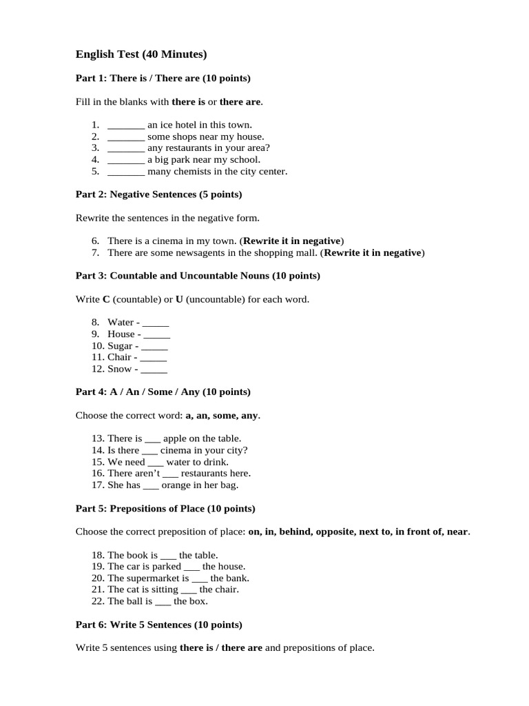 SOLUTION: A comprehensive English Test for all levels to find out the ...