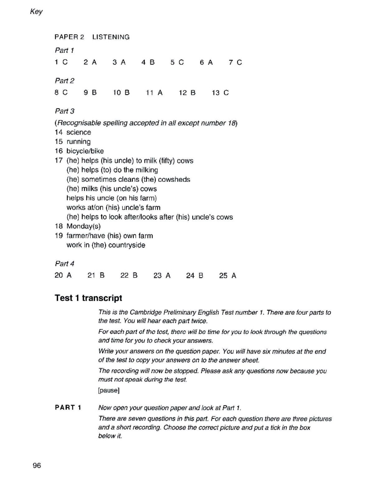 Test A Key and Recording Script: Cambridge English: First | PDF ...