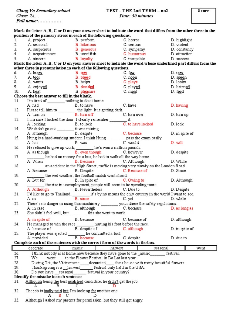 "English Test: Stress, Pronunciation & Grammar" | PDF