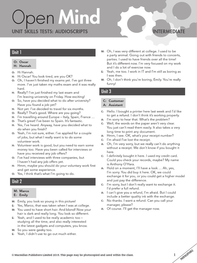 Intermediate English Skills Test Audioscripts | PDF