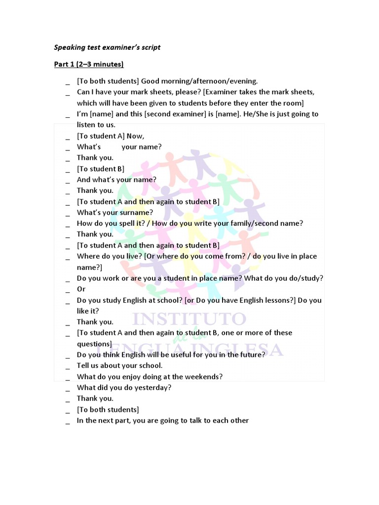 Speaking Test Examiner Script | PDF