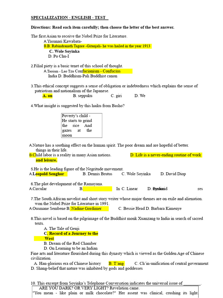 English Literature and Language Test | PDF | Reading Comprehension ...