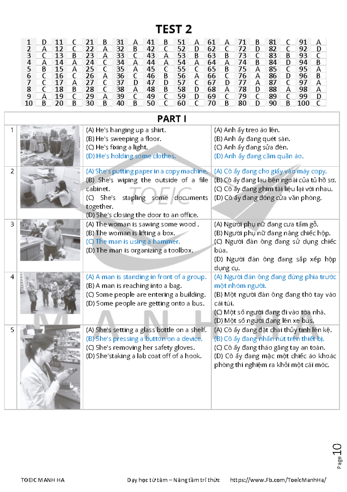 Answer script test 2- listening practice 2 | PDF