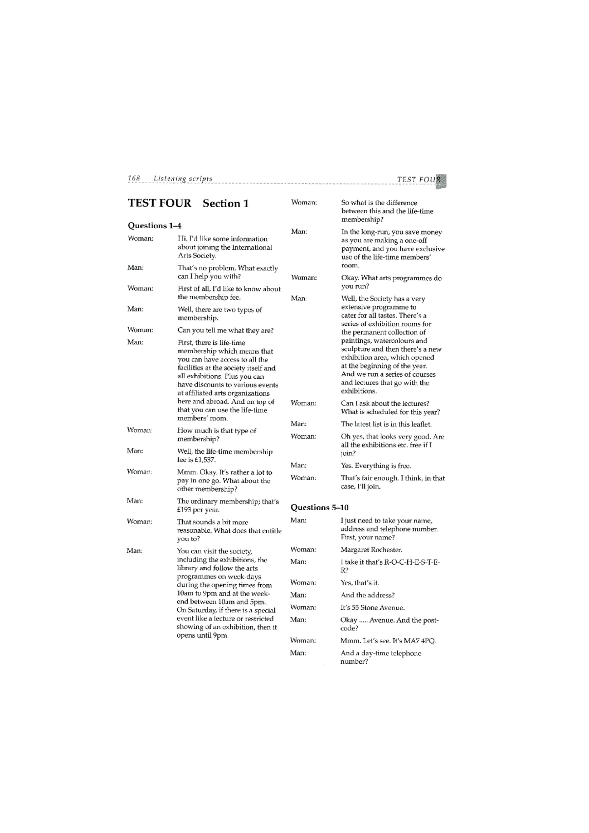 Listening Test 4 Scripts (169-173) Ielts Testbuider 2 - 168 Listening ...