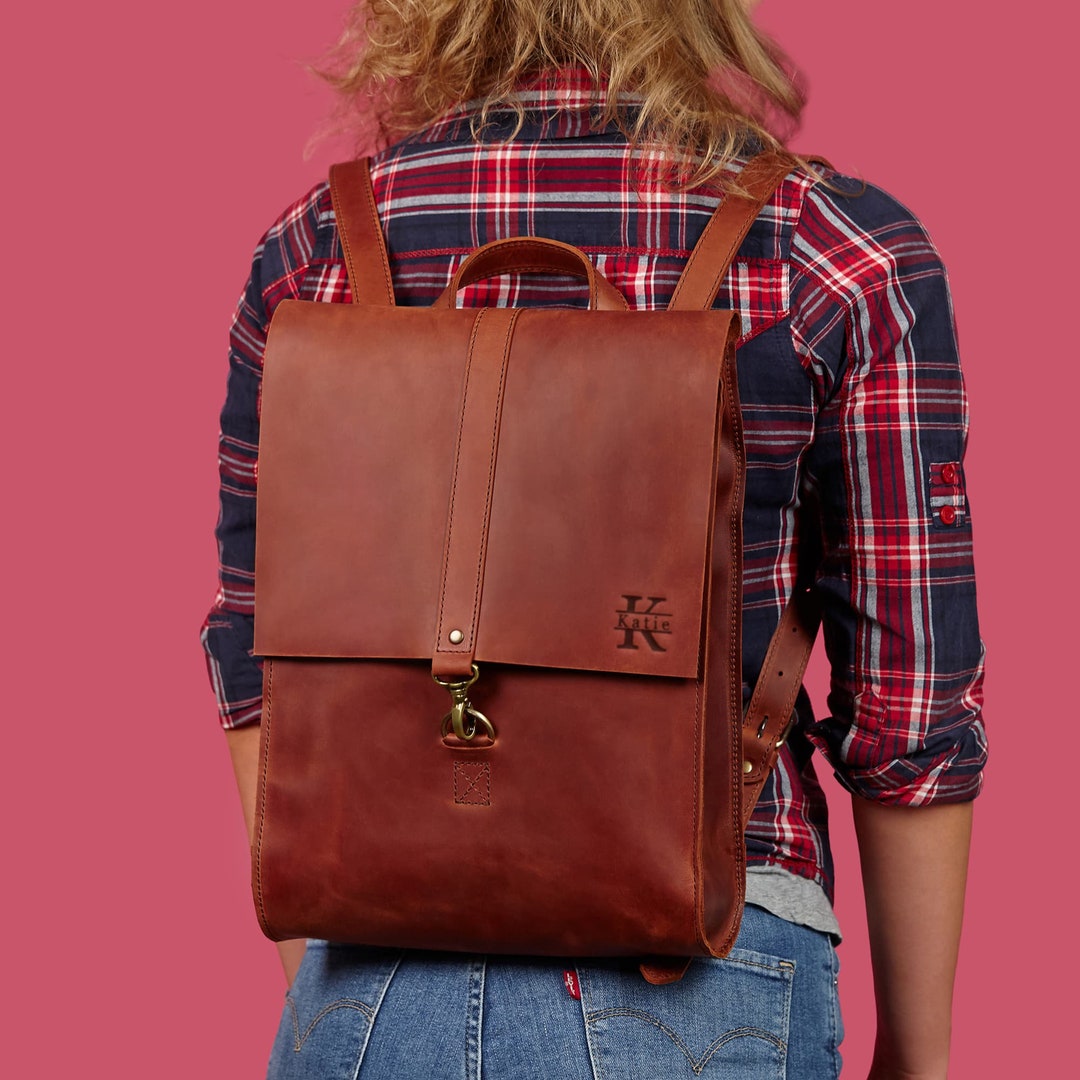 Engraved Leather Backpack, Leather Work Backpack Women, Monogrammed ...