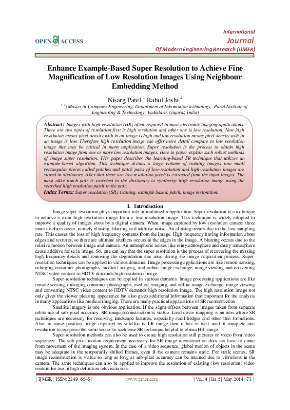 (PDF) Enhance Example-Based Super Resolution to Achieve Fine ...