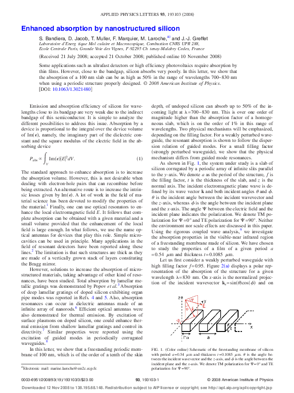 (PDF) Enhanced absorption by nanostructured silicon