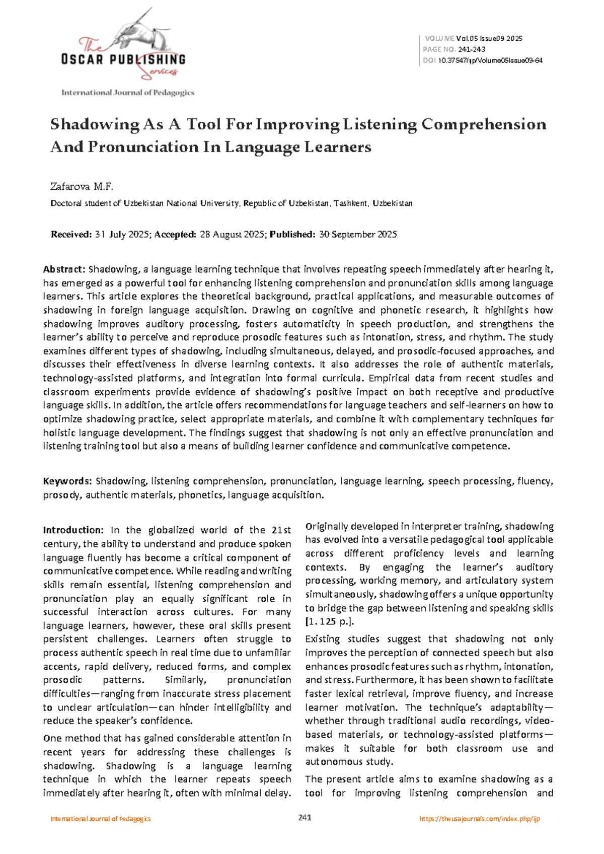 IJP 2025: Shadowing Techniques for Enhancing Listening & Pronunciation ...