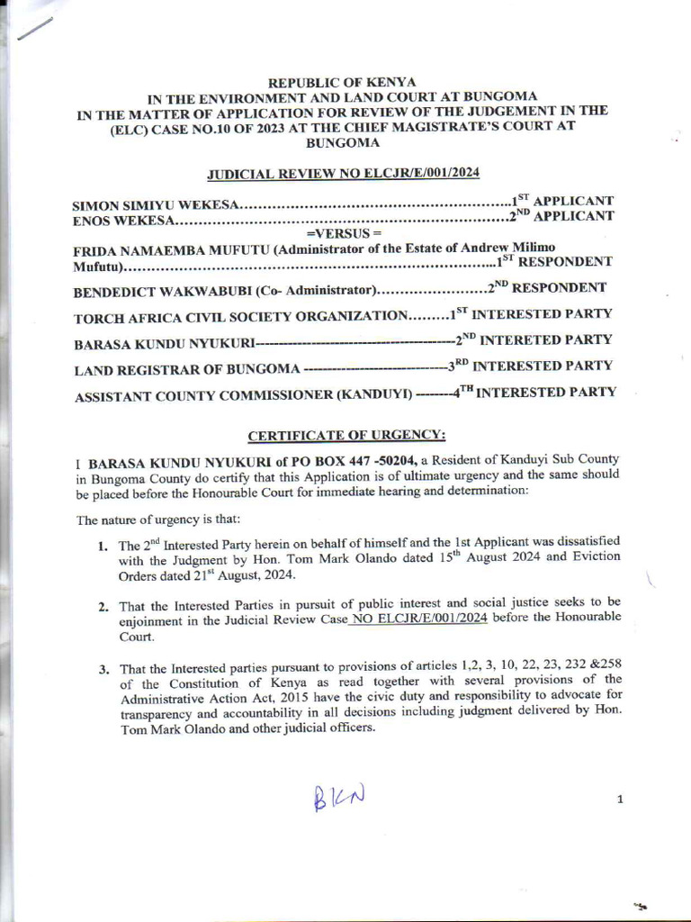 Application For Enjoinment in Judicial Review Case Eljre001 of 2024 | PDF