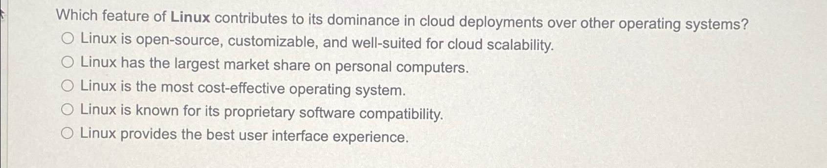 Solved Which feature of Linux contributes to its dominance | Chegg.com