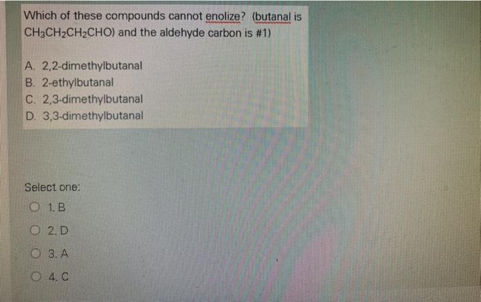 Solved Which of these compounds cannot enolize? (butanal is | Chegg.com