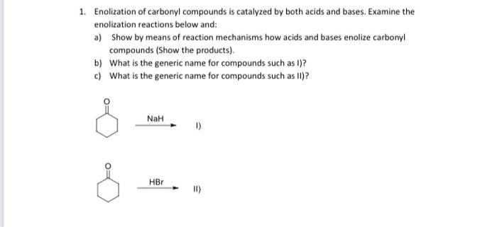 Solved 1. Enolization of carbonyl compounds is catalyzed by | Chegg.com