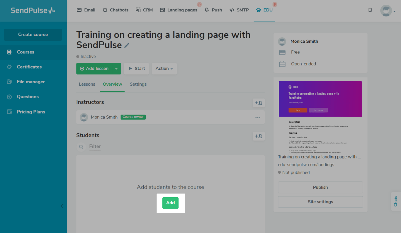 How to Enroll Students in a Сourse | SendPulse