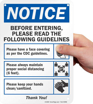 Notice Entering Guidelines Face Covering Social Distancing Sanitize ...