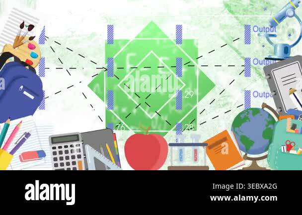 White beam striking central blue icon, spawning blue UI icons streaming ...