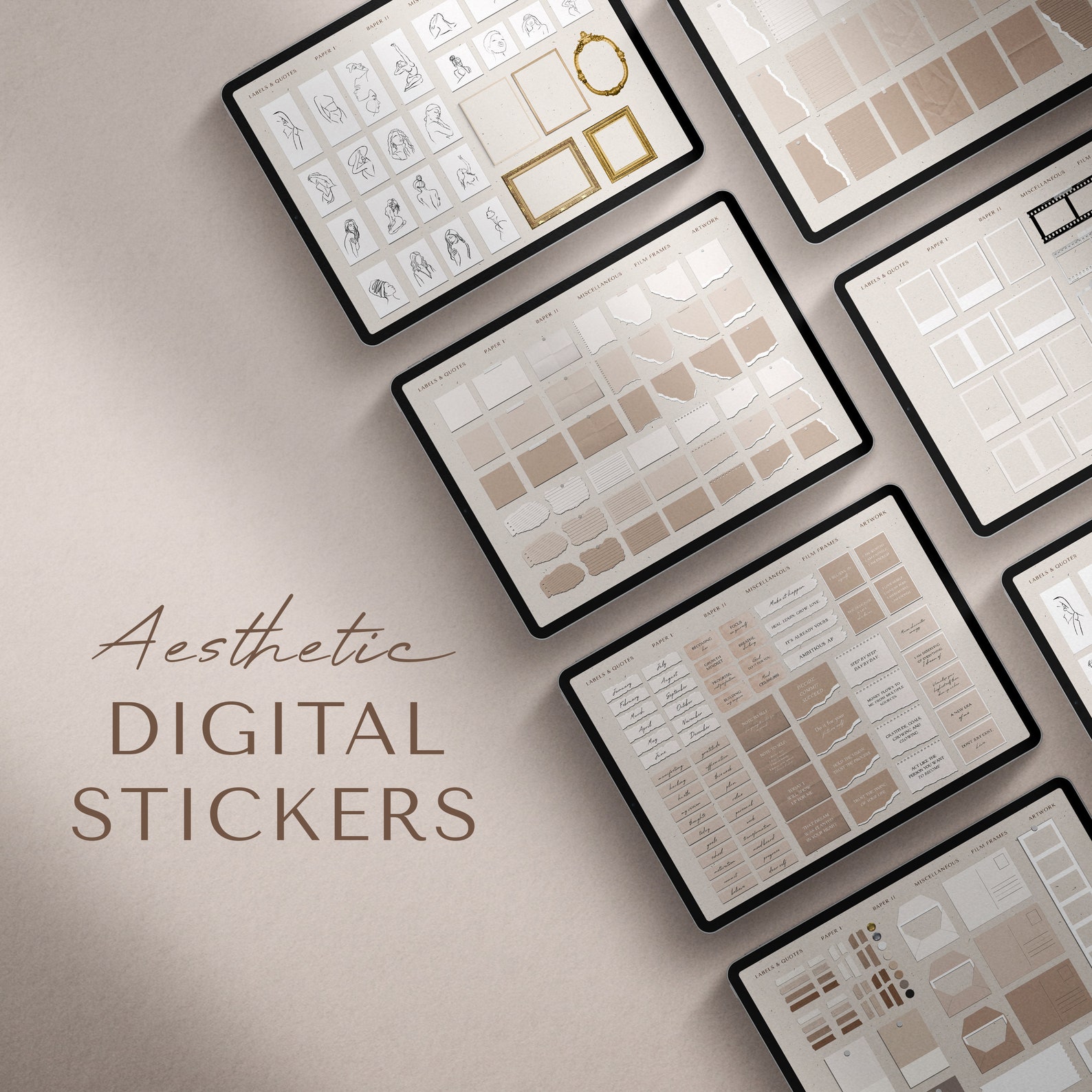 Aesthetic DIGITAL STICKERS, Digital Quote Stickers, Neutral Boho ...