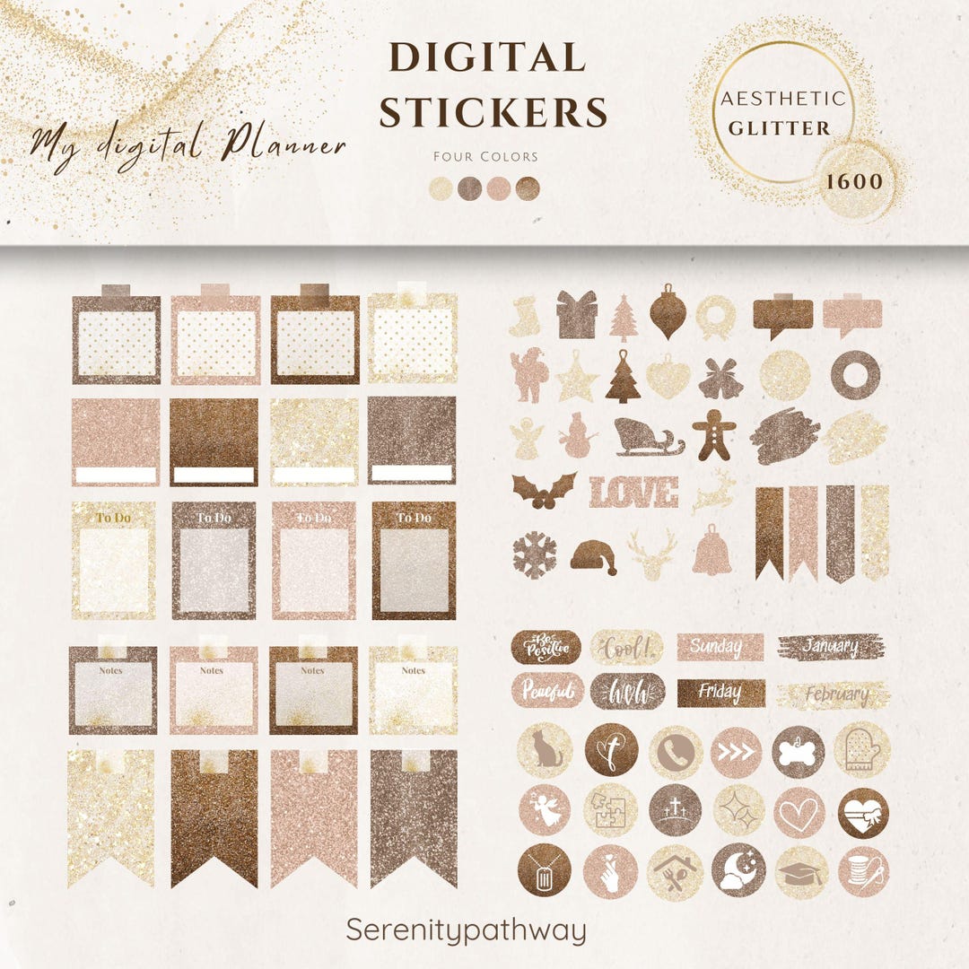 Digital Stickers | 1600 Aesthetic Glitter Stickers Planner | Widget ...