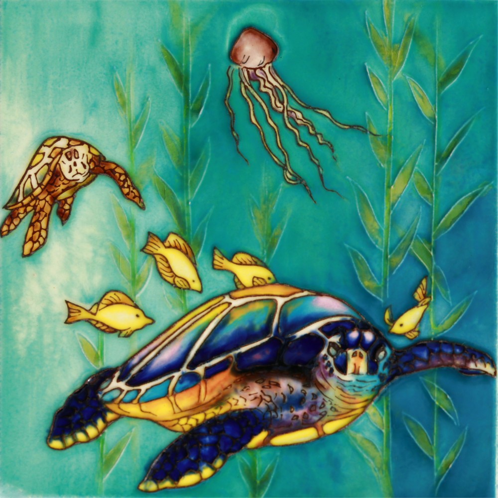8 X8 Sea Turtles With Jellyfish