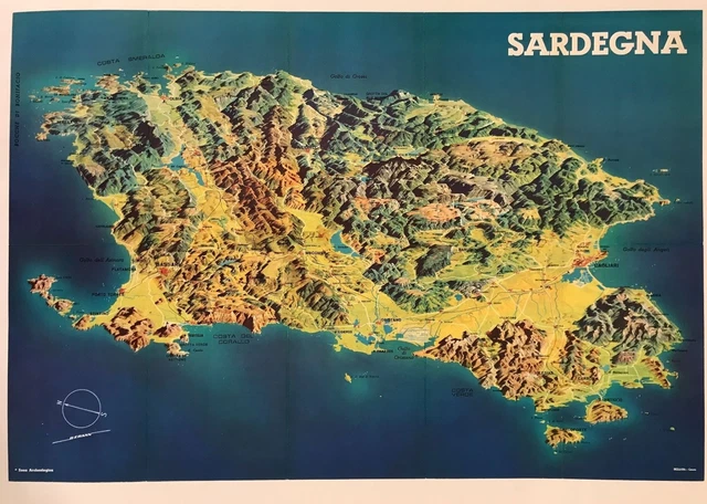 MAP OF SARDINIA In Entile Color £144.25 - PicClick UK