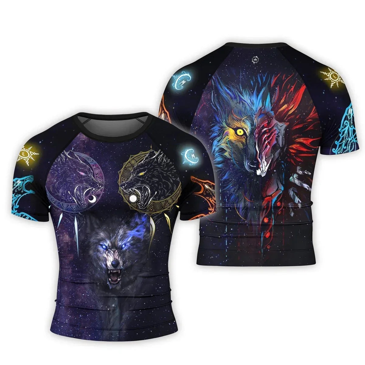 Sun and Moon Wolf Entities Men's Short Sleeve Rash Guard