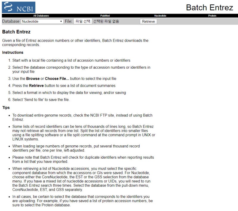 NCBI에서 Accession 목록으로 서열 한꺼번에 다운로드하기 (온라인 Batch Entrez 사용하기) : 네이버 블로그