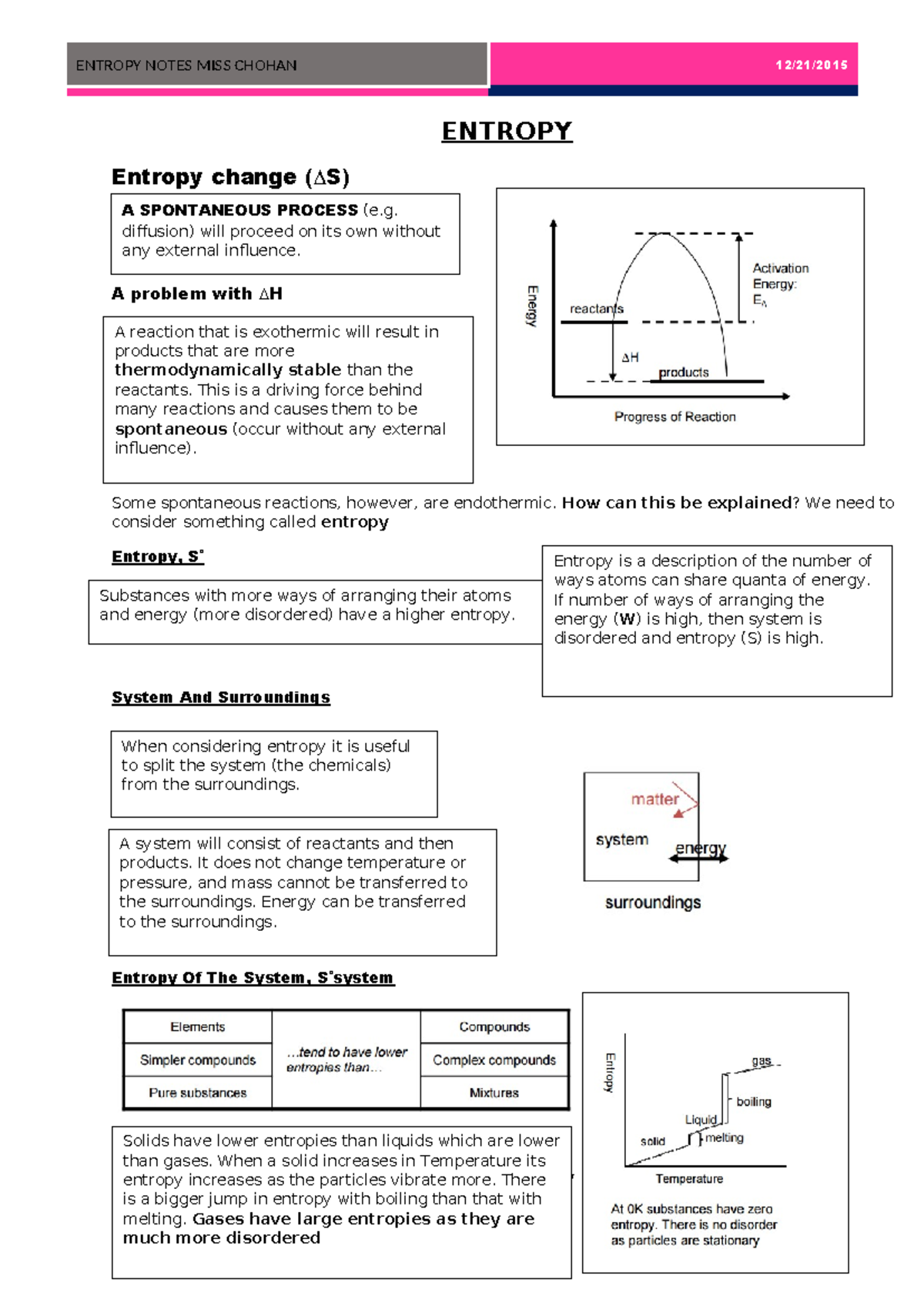 Entropy Notes for Chemistry (Course Code: CHEM101) - Studocu