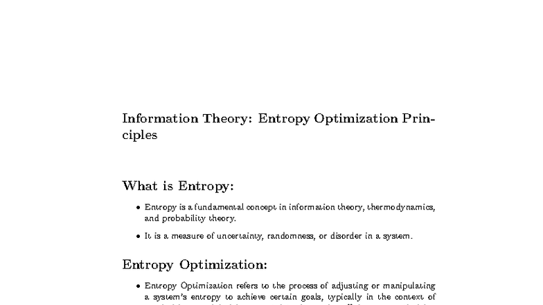 Entropy Optimization Principles: Understanding Key Concepts - Studocu