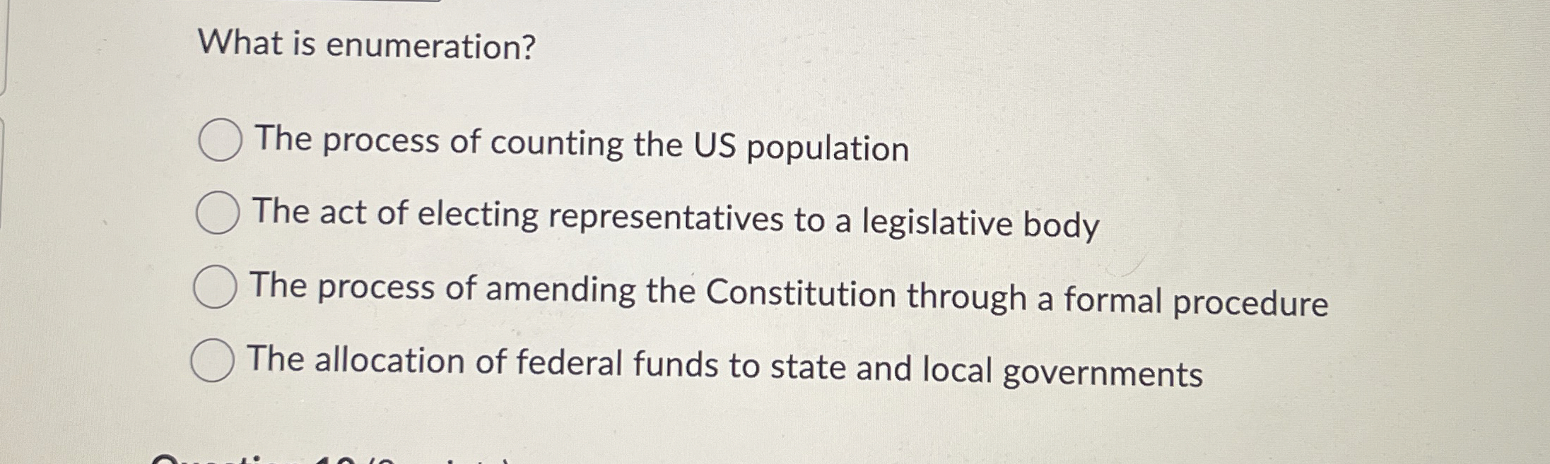 Solved What is enumeration?The process of counting the US | Chegg.com