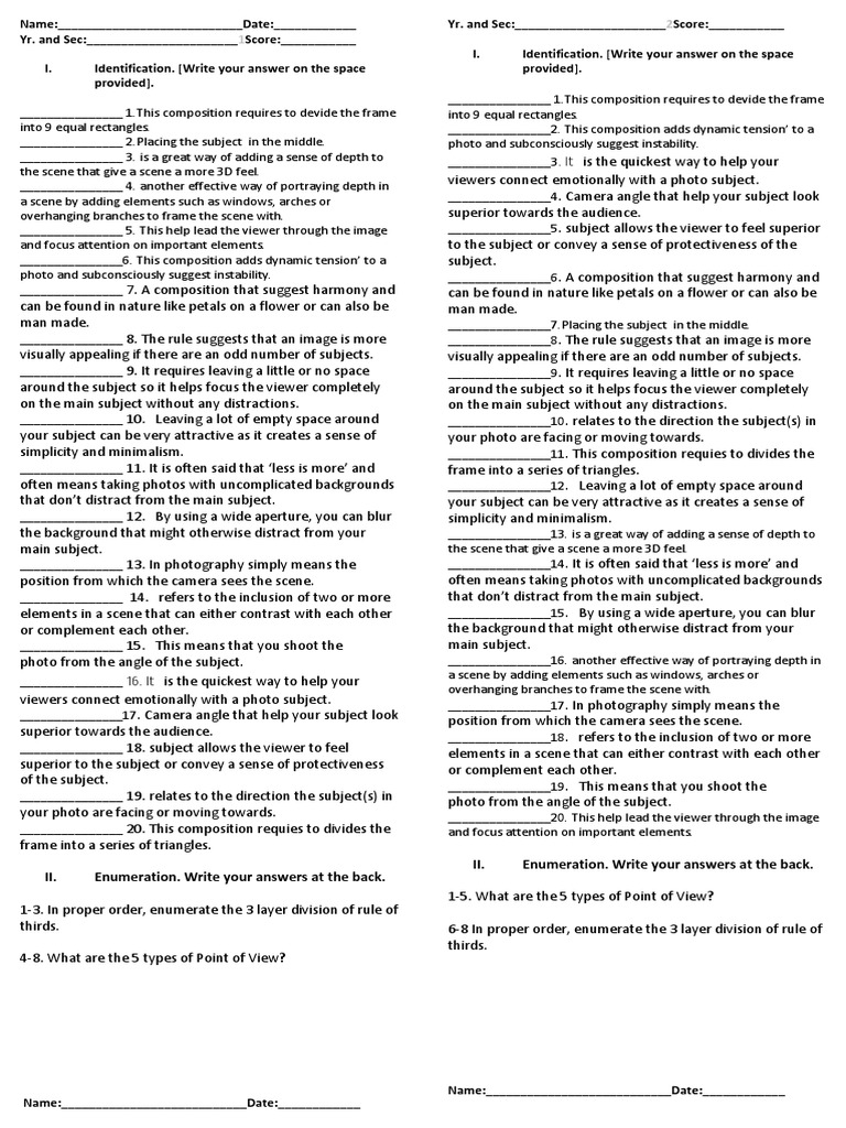II. Enumeration. Write Your Answers at The Back. II. Enumeration. Write ...