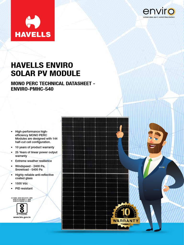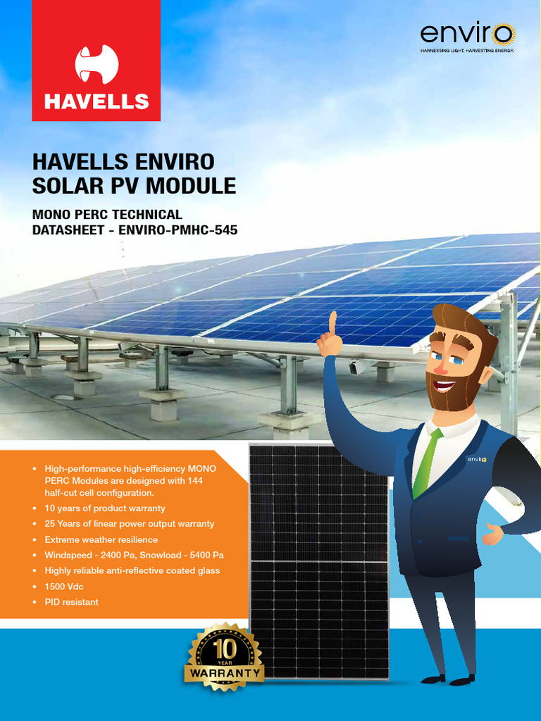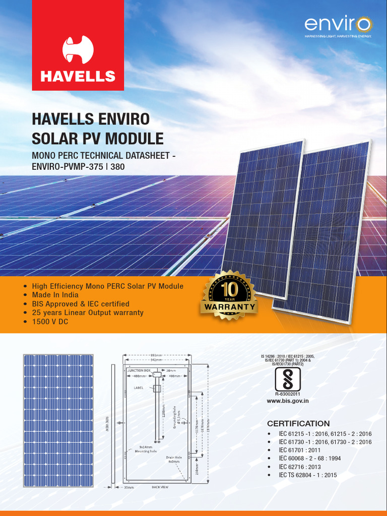 Havells Enviro Mono PERC Solar Module | PDF | Solar Panel | Photovoltaics