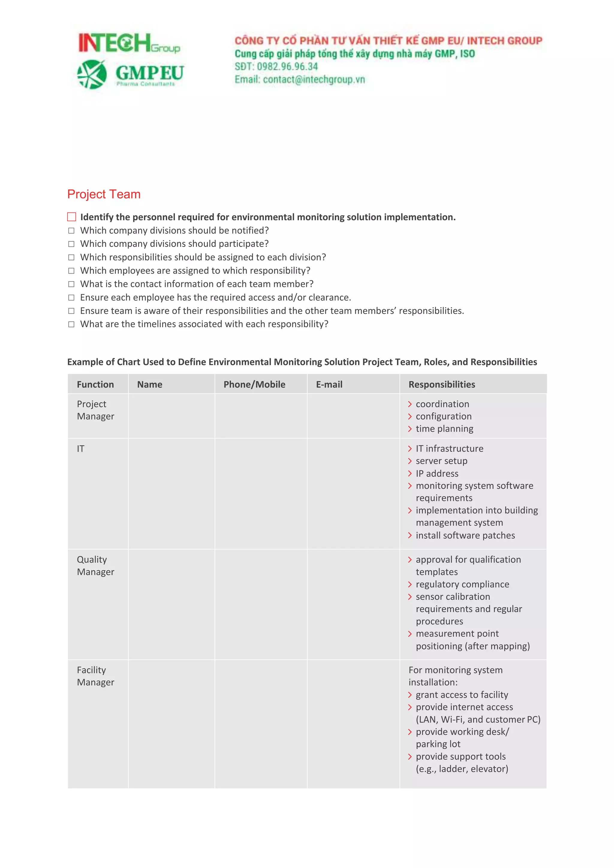 Checklist for lab and cleanroom environ mental monitoring systems | DOCX