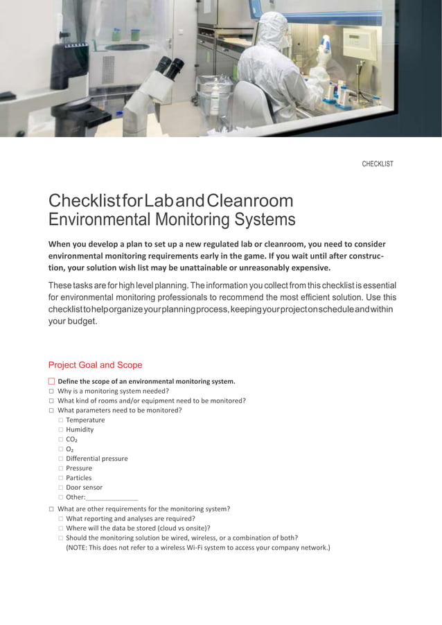Checklist Lab and Cleanroom Environmental Monitoring Systems