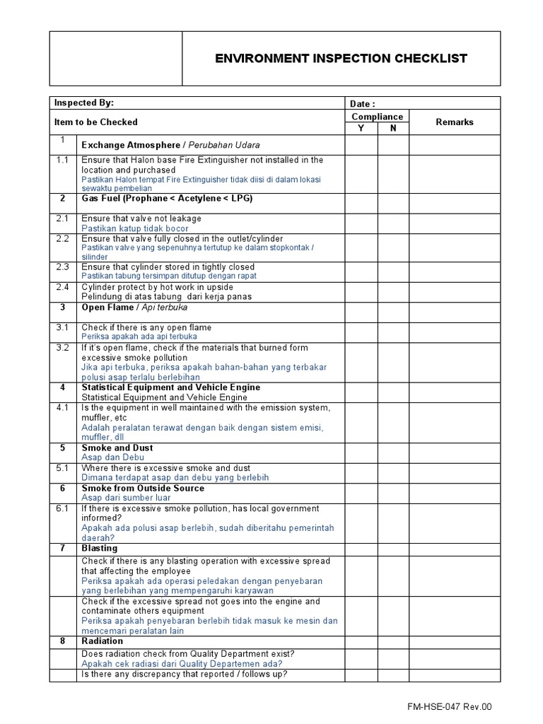 Environmental Compliance Checklist Template in Word, PDF, Google Docs ...