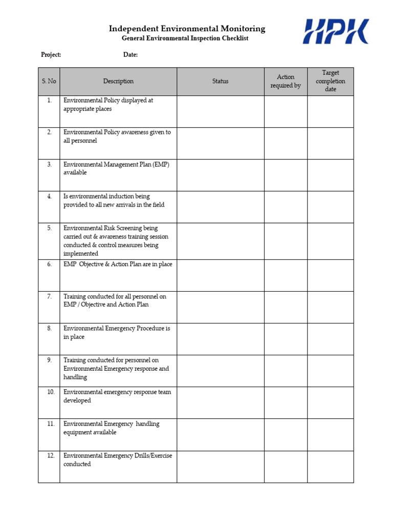 ENVIRONMENTAL SITE INSPECTION CHECKLIST | PDF