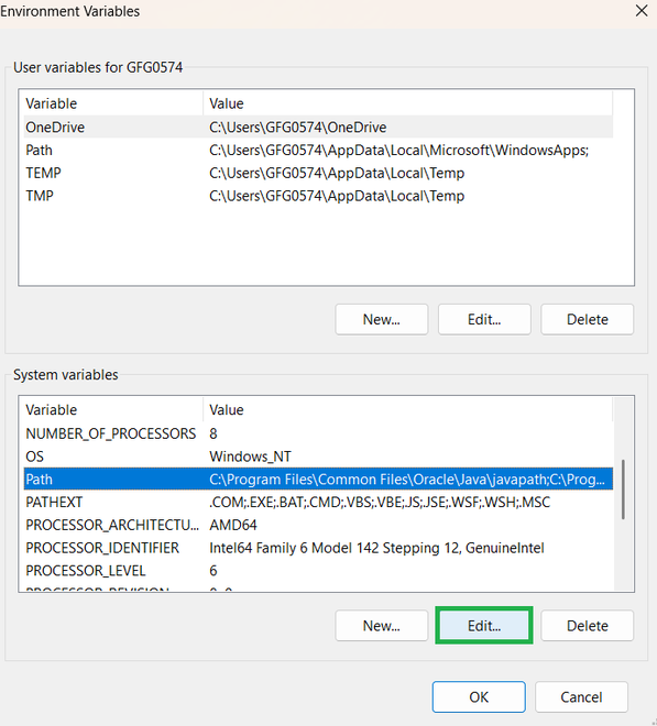 Edit The System Environment Variables Windows