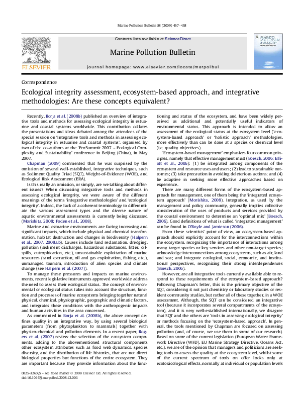 (PDF) Ecological integrity assessment, ecosystem-based approach, and ...