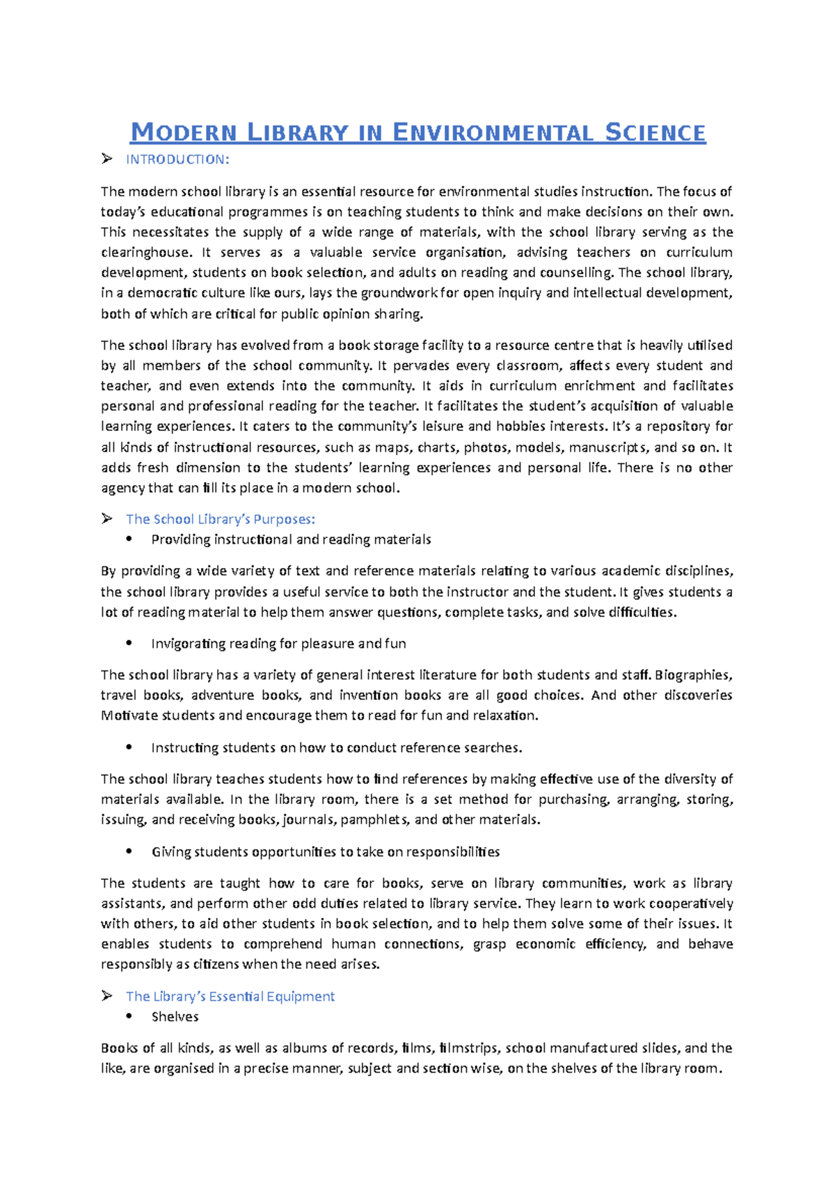 Modern library - Environmental Studies - Studocu