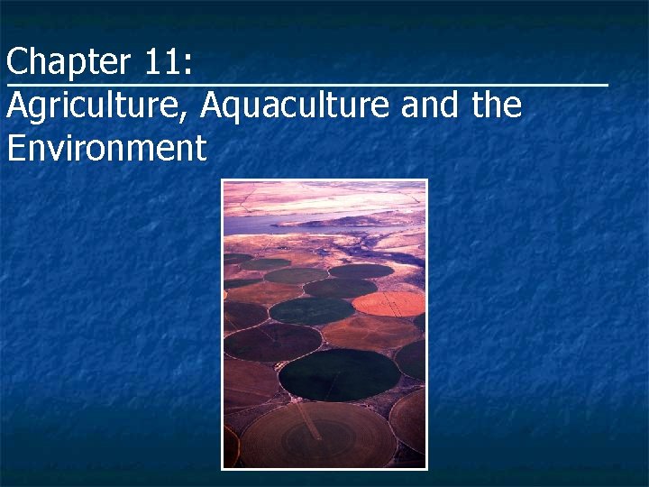 Chapter 11 Agriculture Aquaculture and the Environment Overview