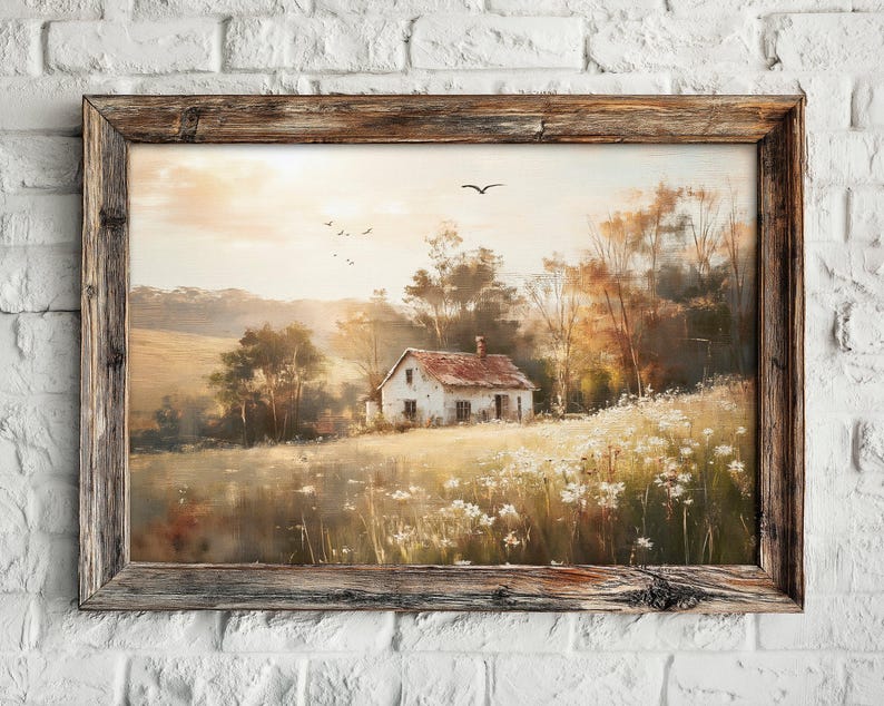 Old Rustic Cottage Landscape, Warm Tones, Peaceful Countryside Wall Art ...
