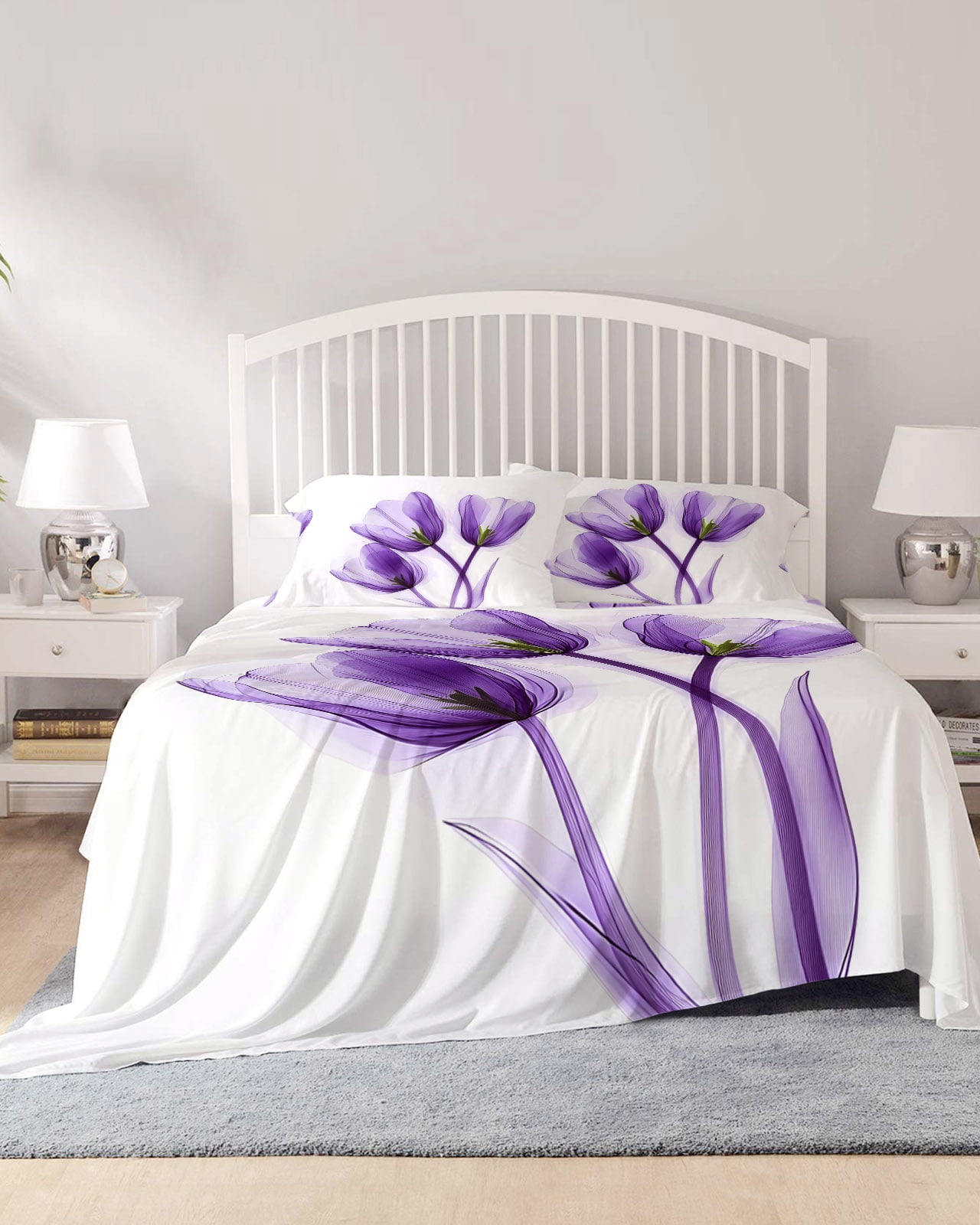 4 Piece Full Sheet Set Luxury Purple Tulip Sheets Set for Full Size Bed ...