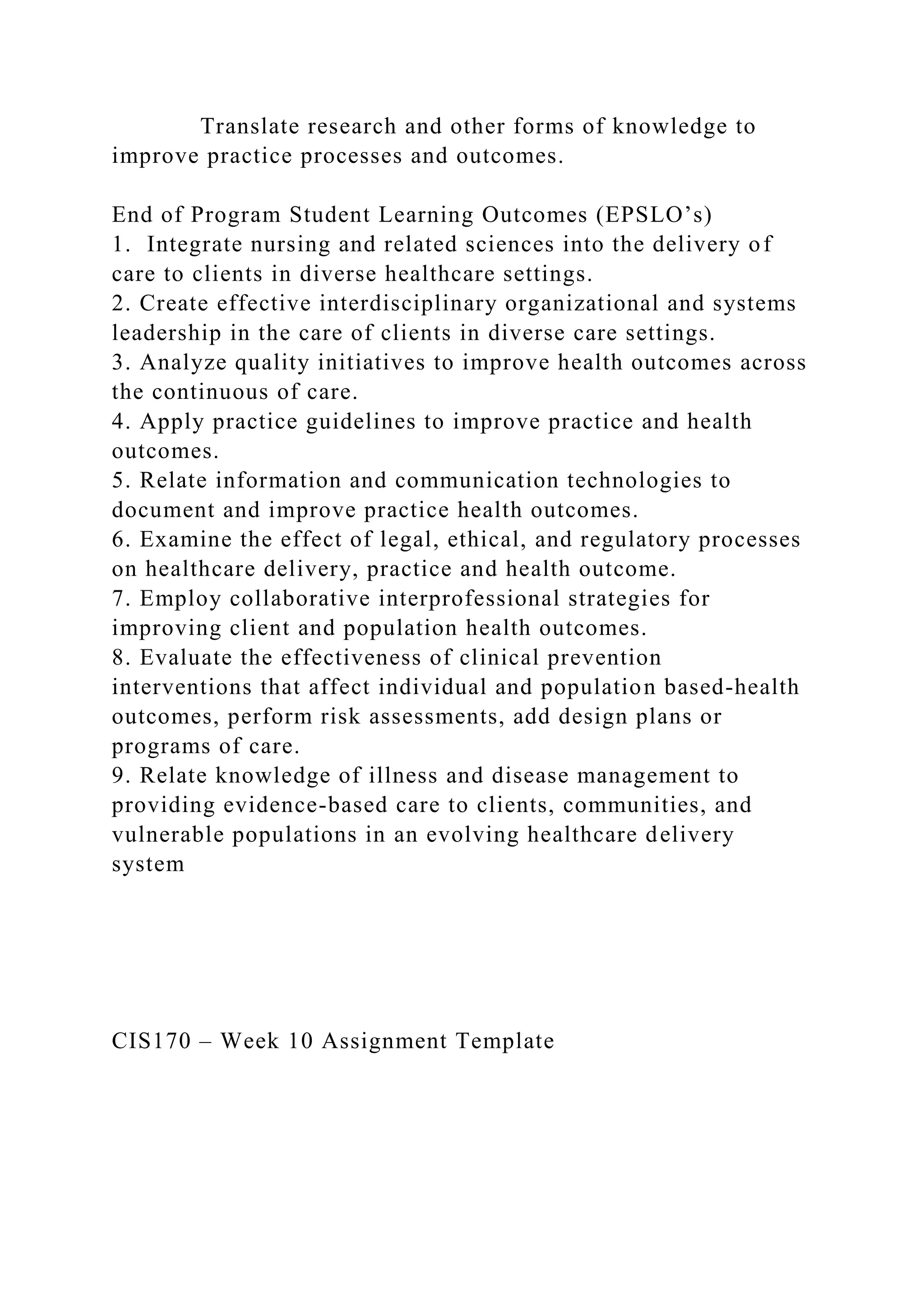 End-of-Program Nursing Student Learning Outcomes & Reflective | Course Hero