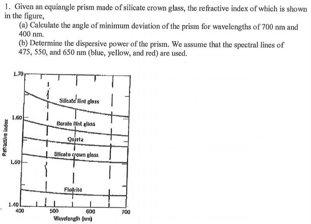 Solved 1. Given an equiangle prism made of silicate crown | Chegg.com