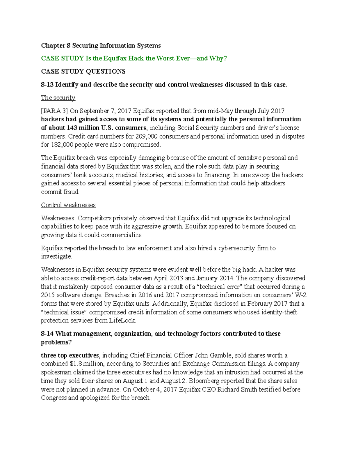 Case Study 8 Equifax Hack.docx - Case Study Equifax Hack Case Study ...