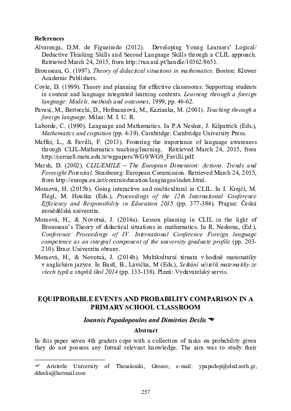 (PDF) EQUIPROBABLE EVENTS AND PROBABILITY COMPARISON IN A PRIMARY ...