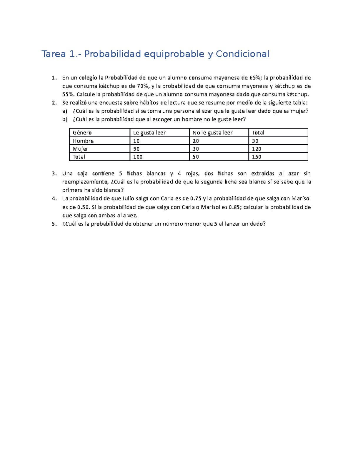 Tarea 1 Unidad 3 Probabilidad equiprobable - Tarea 1.- Probabilidad ...