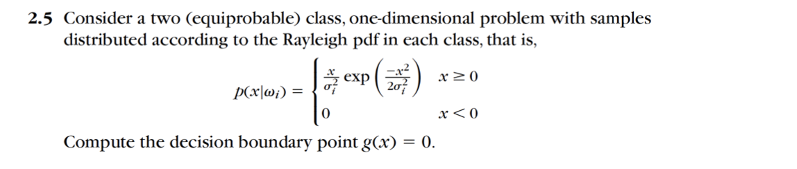 Solved 2.5 Consider a two (equiprobable) class, | Chegg.com