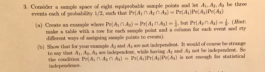 Solved Consider a sample space of 8 equiprobable sample | Chegg.com