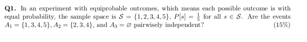 Solved Q1. In an experiment with equiprobable outcomes, | Chegg.com