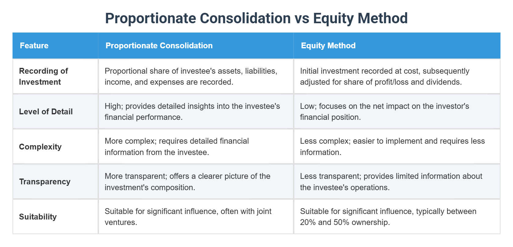 Proportionate Consolidation vs Equity Method