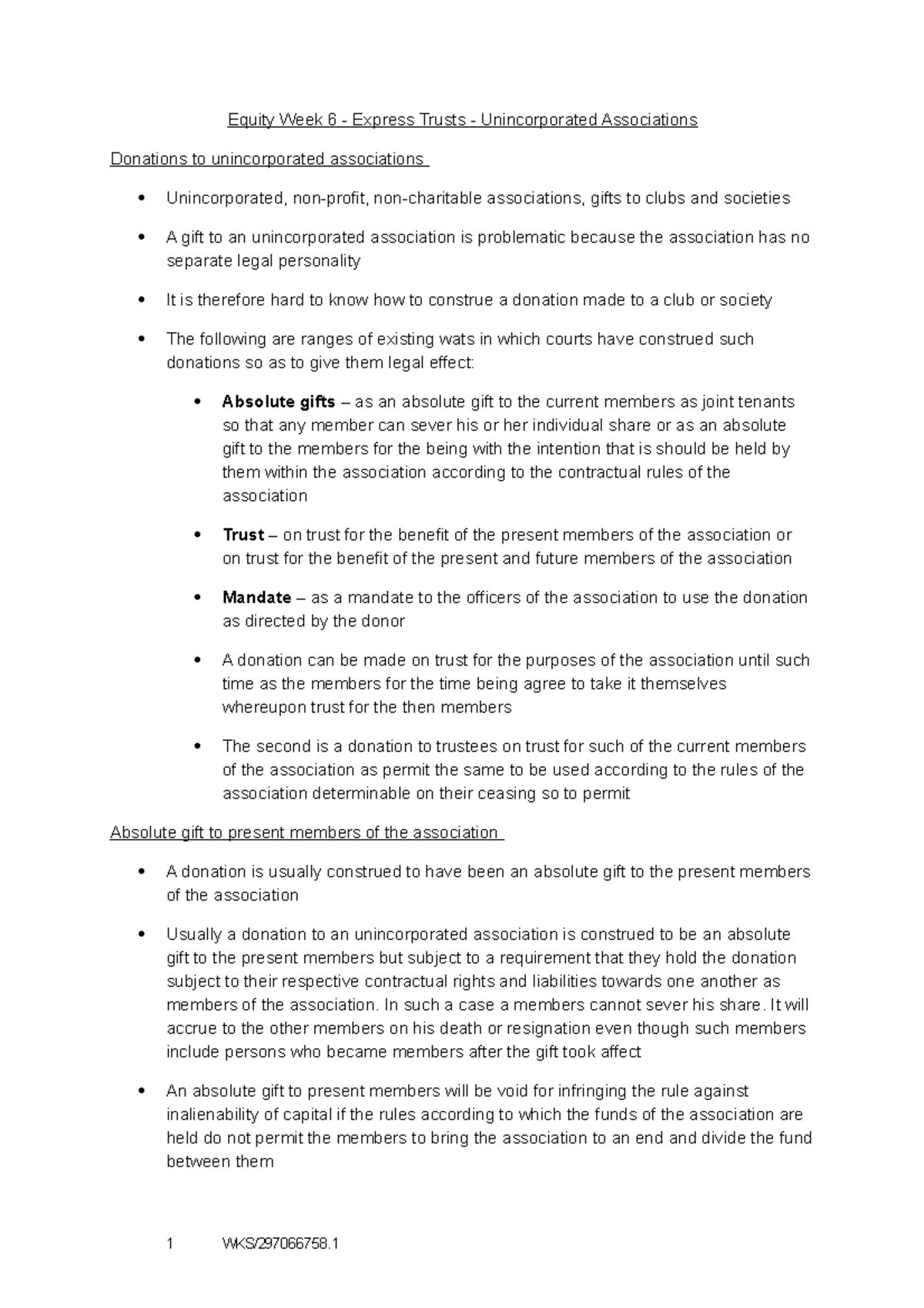 Equity Express Trusts - Unicorporated Associations - Equity Week 6 ...